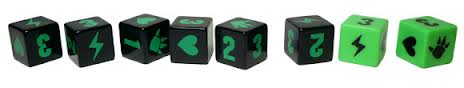 As a dice game, King of Tokyo involves you rolling a lot of dice. Each turn, a player rolls six special dice to see what their monster will do. These dice have the numbers one to three on them, as well as pictures of a lighting bolt, a heart and a claw. If you match three of the same number, you receive that number of points, whilst the pictures have individual effects. Lighting bolts give you energy with which to buy extra abilities for your monster, the heart allows your monster to heal, and claws let your monster attack the other players.
