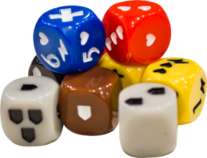 Super Dungeon Explore follows the same basic premise as Descent and Heroquest. It actually feels quite similar to Descent in a lot of ways. Both feature a good selection of heroes descending into a dungeon to face off against a horde of monsters led by powerful boss monsters. Both have nice miniatures and beautiful map tiles. Both feature one player taking on the role of overlord/consul and trying to dick over his friends. Both have a range of expensive expansions that add lots of choice and awesomeness to your game. Both have very similar combat systems with, again, very similar colour-coded custom dice: