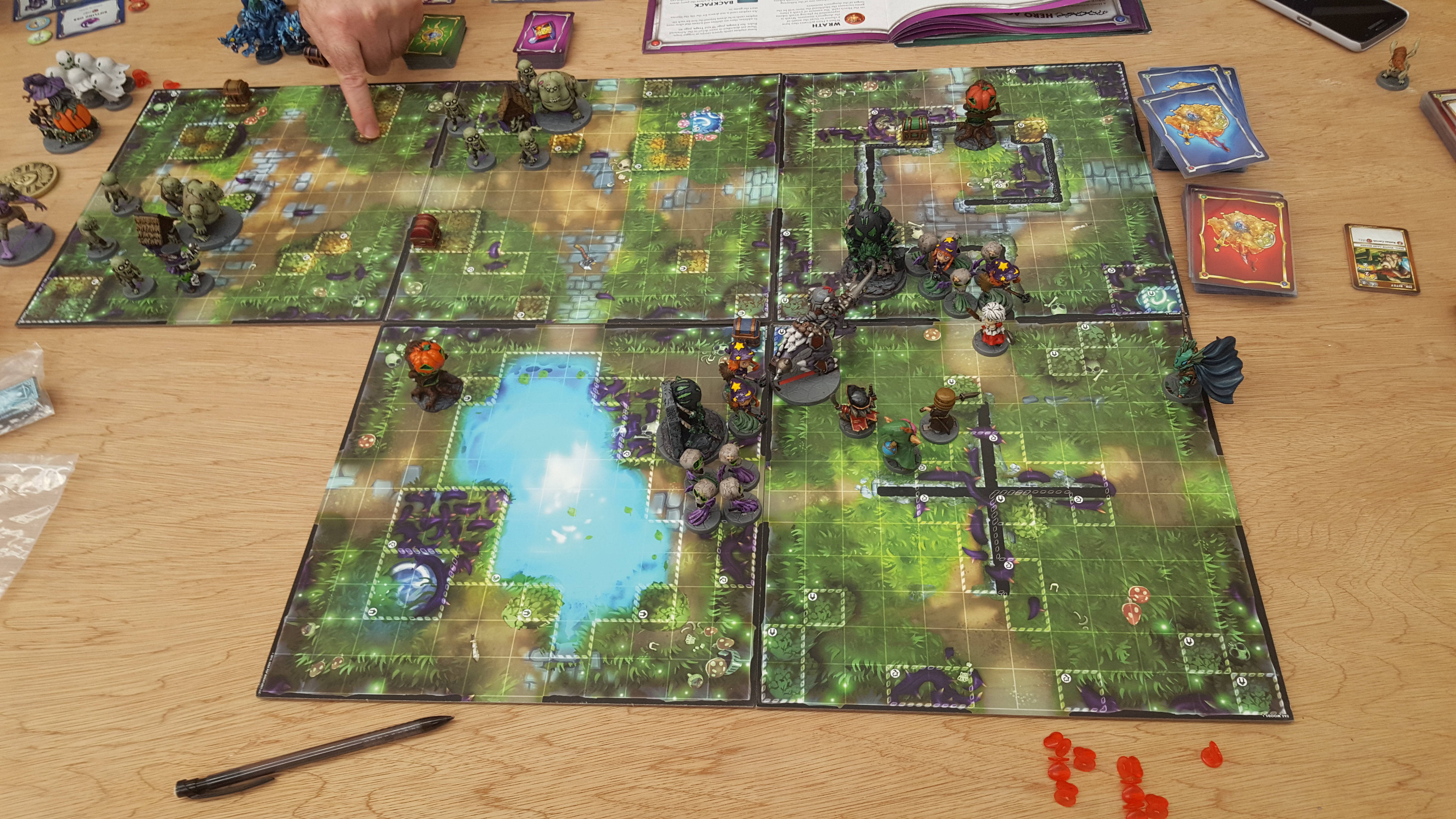 It’s been a pleasure to watch him paint them all up, but I can’t help but notice how much more I enjoy playing with his completely painted Super Dungeon Explore set than with my own, unpainted game. Here are a few photos I snapped from a recent game: