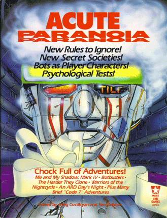 - Acute Paranoia: The First-Edition rules supplement with longtime fans’ best-loved adventure, “Me and My Shadow Mark IV.” (“Something falls off.”)
