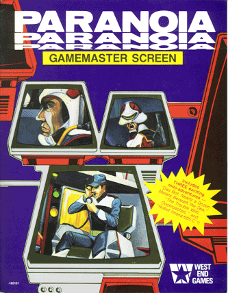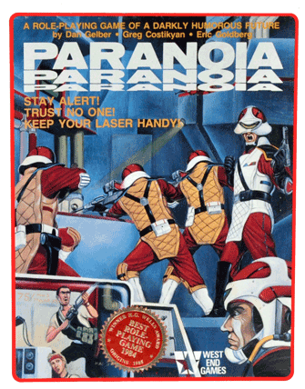 - PARANOIA First Edition (1984): The original three-book set, including the complete Player, Gamemaster, and Adventure Handbooks, about Troubleshooters in a future underground city in service to an insane Computer.