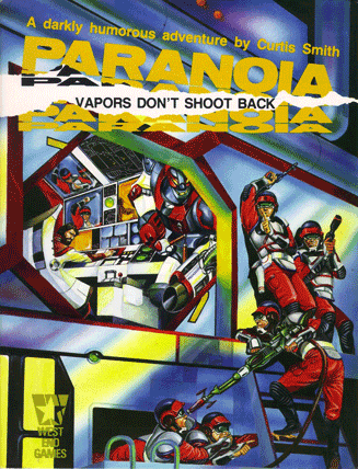 - Vapors Don’t Shoot Back: The first full-length PARANOIA mission (1985), written by Curtis Smith (with Geoff Valley), sends the Troubleshooters into a covert contest between rival High Programmers.
