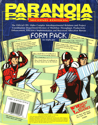 - PARANOIA Second Edition (1987): The complete 128-page rulebook and the 16-page supplement The Compleat Troubleshooter (the one with the Mandatory Bonus Duties).
