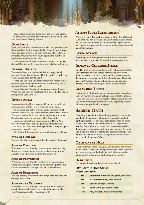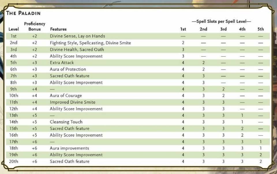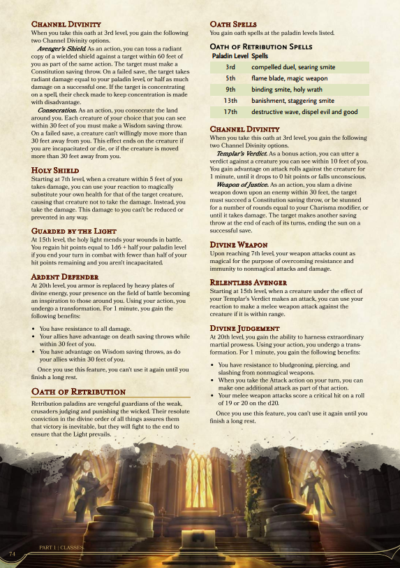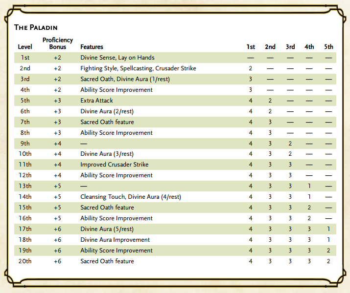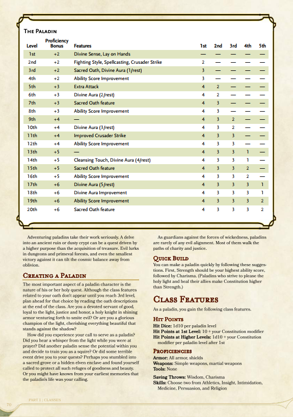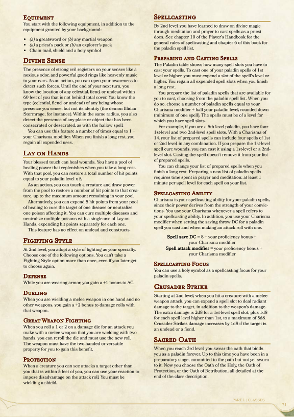 Let’s move on from you being disappointing and take a look at one of the classes. I’m enjoying playing as a paladin just now in our Strahd campaign, so let’s go with that, beginning with the old: