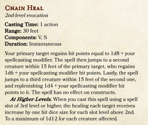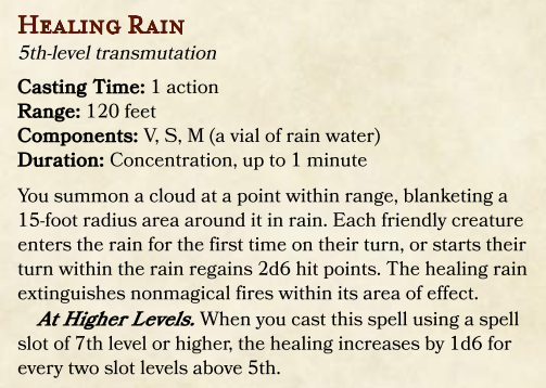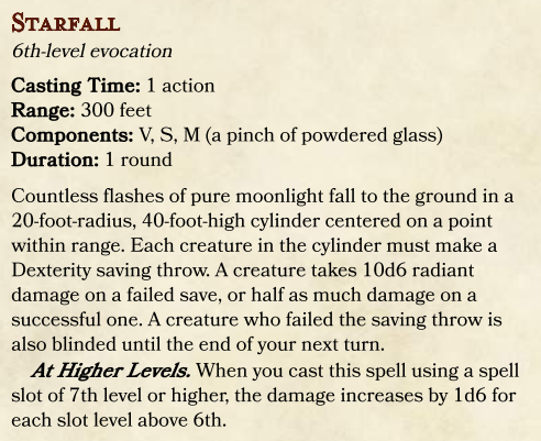 Finally there’s the spellbook, wherein you will find spell lists for each of the caster classes. As with the feats, equipment, and backgrounds, this section of the book refers back quite heavily to the D&D Player’s Handbook. The lists include many spells from the Player’s Handbook and a few others that are preceded by asterisks. These asterisked spells are new and specific to this campaign setting. They include familiar spells for players of World of Warcraft, including the Mage’s Frostfire bold, the Warlock’s Ritual of Summoning, the Priest’s Mind Flay and the Shaman’s Healing Rain. The lists are followed by descriptions of the new spells. Here are some interesting examples: