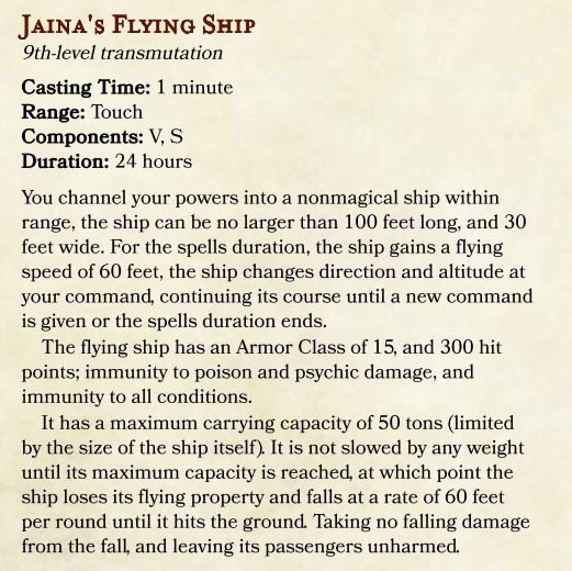 Jaina’s Flying Ship sounds fun, doesn’t it? The vindictive part of my heart is a little disappointed that the ship can fall out of the sky without hurting the players, but that’s fine. I just like the image of them pushing their luck that little bit too far and falling to their gruesome deaths. Says a lot about me, possibly…