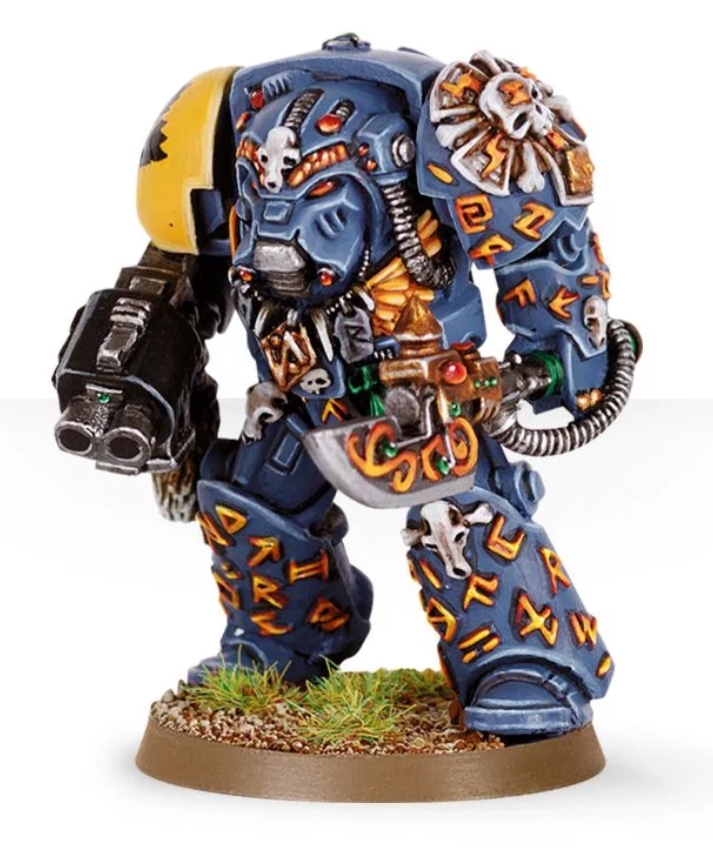 These are from all over the place. The power-armoured Njal is from 2nd edition. The generic Rune Priest in Terminator armour is also pretty dated, being out of date by a couple iterations of Terminator armour. The 13th Company Rune Priest and Njal’s Terminator-armoured miniature from 5th edition both feel more current.