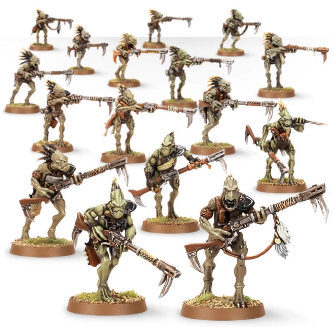 I don’t care much for the Tau, but I do find the range reassuringly consistent. All of the Tau models share a tight aesthetic that is carried across all of the range. They look good. The thing is, my favourite part of the Tau were never the actual Tau. I always had something of a soft spot for the Kroot. I still remember the White Dwarf issue that introduced the Kroot Mercenary army as a standalone option. It was really cool! It made the most of the various different Kroot miniatures: