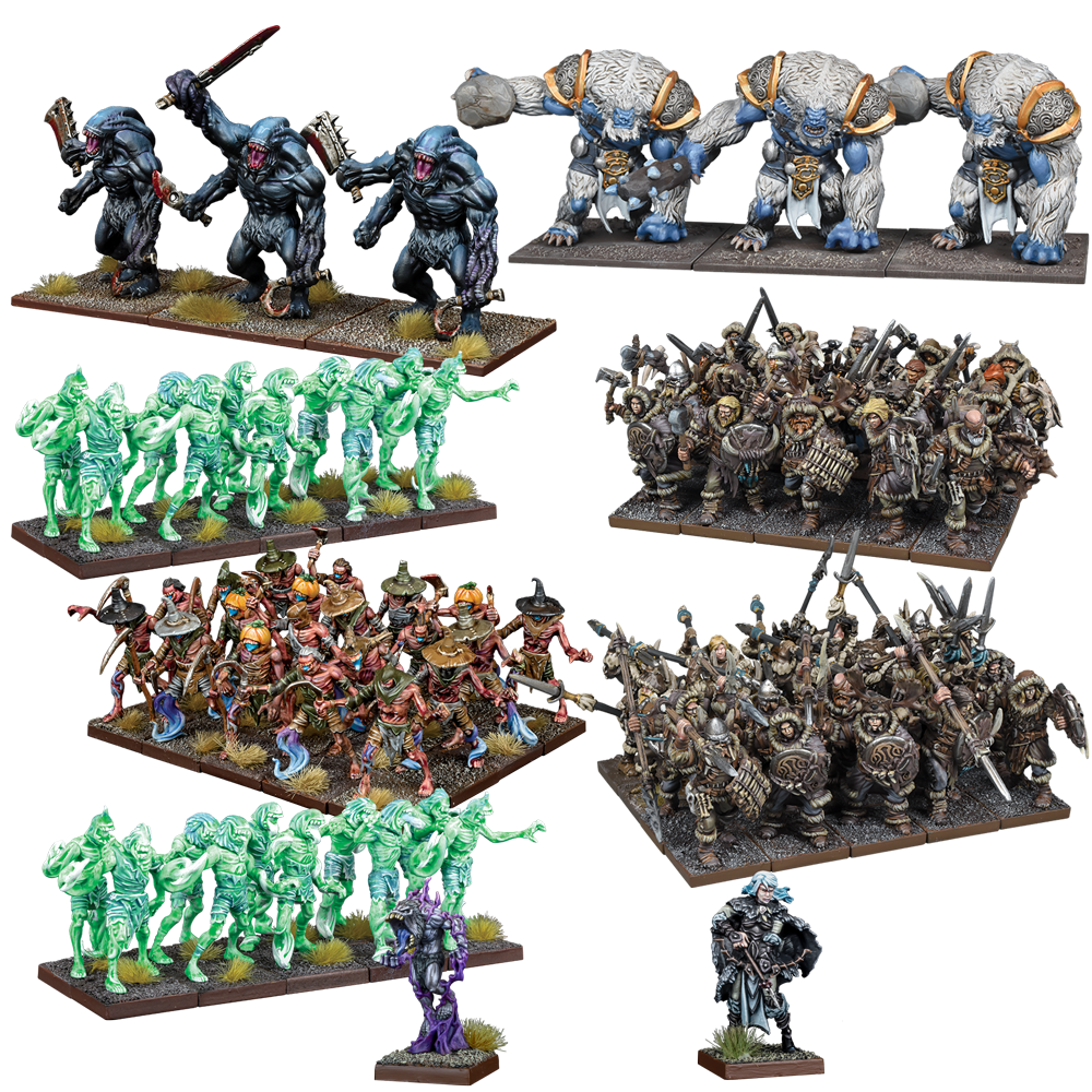 There are two very pretty armies in that set, with 44 miniatures for each. The Nightstalkers are fantastic horror-themed miniatures with ghosts and scarecrows and some big ol’ beasties thrown in for good measure. They’d look at home in tons of games, even if you’re not that into Kings of War. The Northern Alliance miniatures are even nicer. I love the clansmen/pack hunters, which I’ve picked out above with an individual picture. They are detailed and exude personality. I’ve always found Mantic’s miniatures to be a bit hit-or-miss, but this box is just full of hits, and all for a really reasonable price tag!