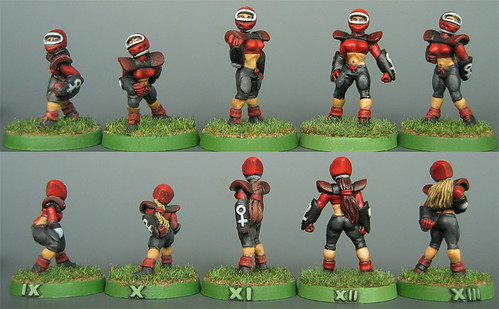 This is their standard human team and they look pretty good. The miniatures are a lot slender than GW’s miniatures and, although there’s not a huge amount of detail, the sculpts are nice and clean. They look sporty, with very American football-esque armour and good boots. I can also definitely attest to the quality of Shadowforge’s minis.
