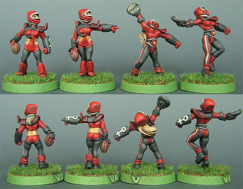 I’m having to go by a pretty poor image here, but I’m not sure that I entirely like the sculpts of the faces on some of these miniatures. The armour is pretty cool, but it’s another example of the sort used in the RN Estudio and Black Scorpion teams. I think this team looks pretty good, but it does suffer from being neither as impressive as the RN team nor as cheap as the Black Scorpion one.