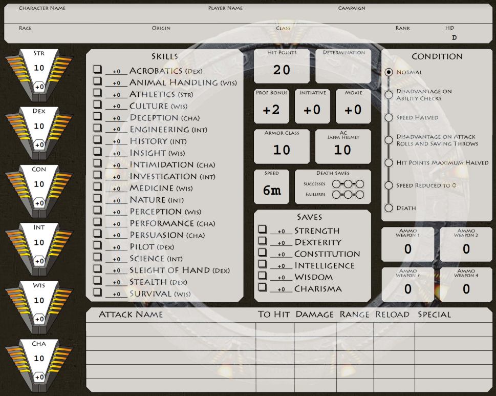 I’m not going to spend long on looking at the core rules of the game because it’s essentially D&D. It’s the 5E we know and love, or at least are willing to fool around with from time to time. It’s a decent, solid system. I said previously that the authors of this Stargate RPG have managed to de-fantasy-ify (I know, not a word, don’t @ me!) 5E, and they have. They’ve struck a nice balance of being different, yet familiar, and there’s more to come! This is not a finished product. There’s a lot of missing detail, but it will be added and things will be generally polished.