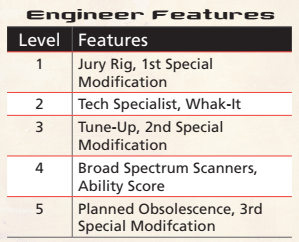 As I said, classes are quite different in this game. In D&D each class has a huge advancement table that takes their character from level 1 to level 20, showing what a character gets at each level. This is a clear advancement table that then plugs into subclass options to add variety. Not so in Stargate. In this game, the classes only have 5 levels in their advancement tables. Here are a few of these tables as an example: