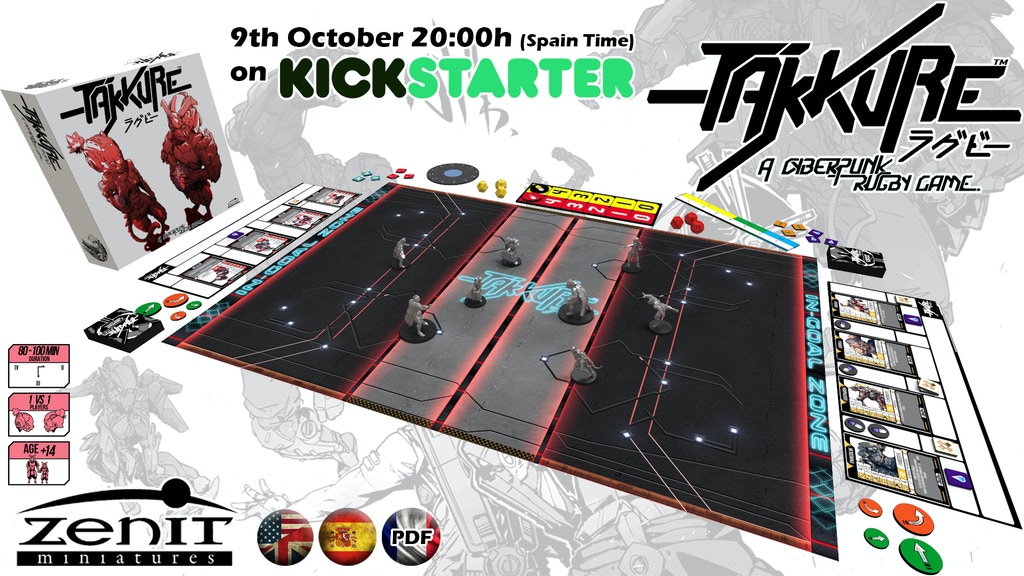 Zenit Miniatures launches Kickstarter for Takkure – For someone who really doesn’t care about sports, I do like sports-based miniatures game. Blood Bowl, Dreadball, Aristeia, Guild Ball… All great. Now, Zenit Miniatures is looking for funding for their cyberpunk rugby game, Takkure: