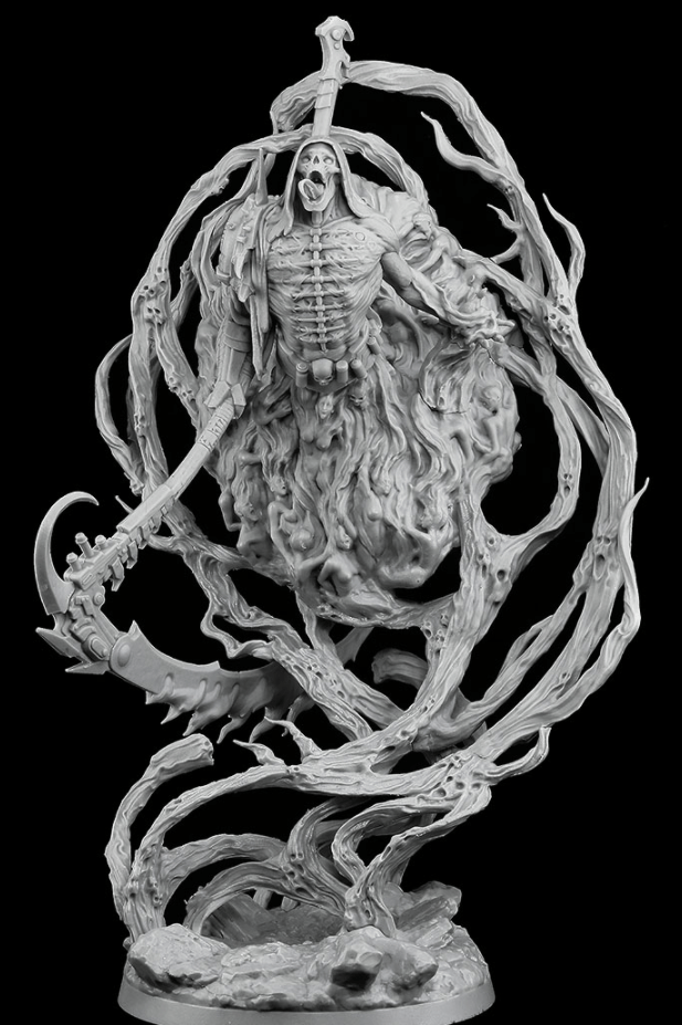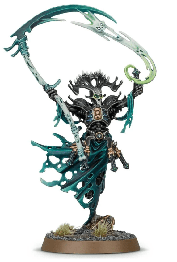 I don’t know that C’Tan have gender, but this would definitely be a more feminine option. This could be used as either, again, a Transcendent C’Tan, but it could also be a cool and thematic Nightbringer. The supplied base is the right size for the Transcendent C’Tan, but it could easily fit onto a 40mm base to act as a Nightbringer. As above, there’s a bit of work needing done. Again, I’d add a nice, Necronny blade to the staff, most likely making some sort of scythe. The little ghosts that accompany her could be kept, but maybe given new faces. Wraith faceplates, perhaps? I really like this model, and at £27.50, it’s quite reasonable.
