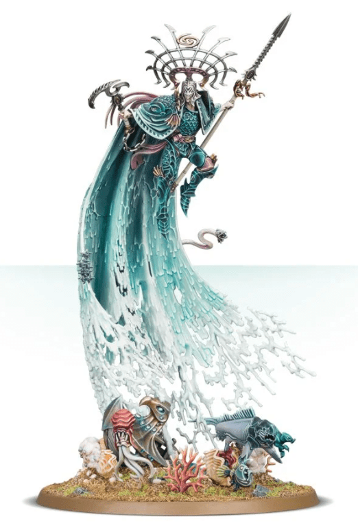From the Idoneth Deepkin range for Age of Sigmar, the Eidolon of Mathlann is an impressive mini. It’s tall enough to fill the role, but comes on a base that is a bit bigger than needed. I’m sure, with a bit of jiggery pokery, you could get it onto a 60mm base to match the Ascendant C’Tan. I think there are a few things that will need done to really make it look the part. Maybe a head swap? Perhaps an alternative blade on that spear? You could turn it into a scythe, or just have a generally more ‘Necron’ blade. You’d also need to clear the base of all the sea life, possibly by replacing them with a bunch of Scarabs. Yeah, there’s real potential here, though at £75 the price is a little prohibitive.
