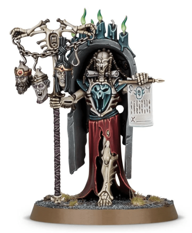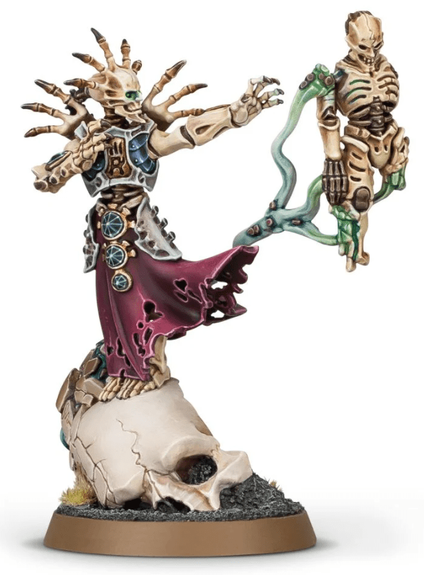 So, at £37.50 for a pack of two, this option represents pretty good value, and they do come on the 60mm bases required for the Transcendent C’Tan. I’ve seen a few people say that they have used these guys as C’Tan, some of whom have converted the head and/or the weapon. Personally, I think they look a bit rough for C’Tan, and I prefer them looking a bit more human. That said, these guys and the whole Ossiarch Bonereapers line, can look at home in a Necron army. As an aside, here are three other characters from the line that would great as Crypteks: