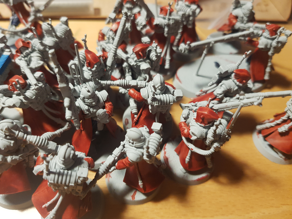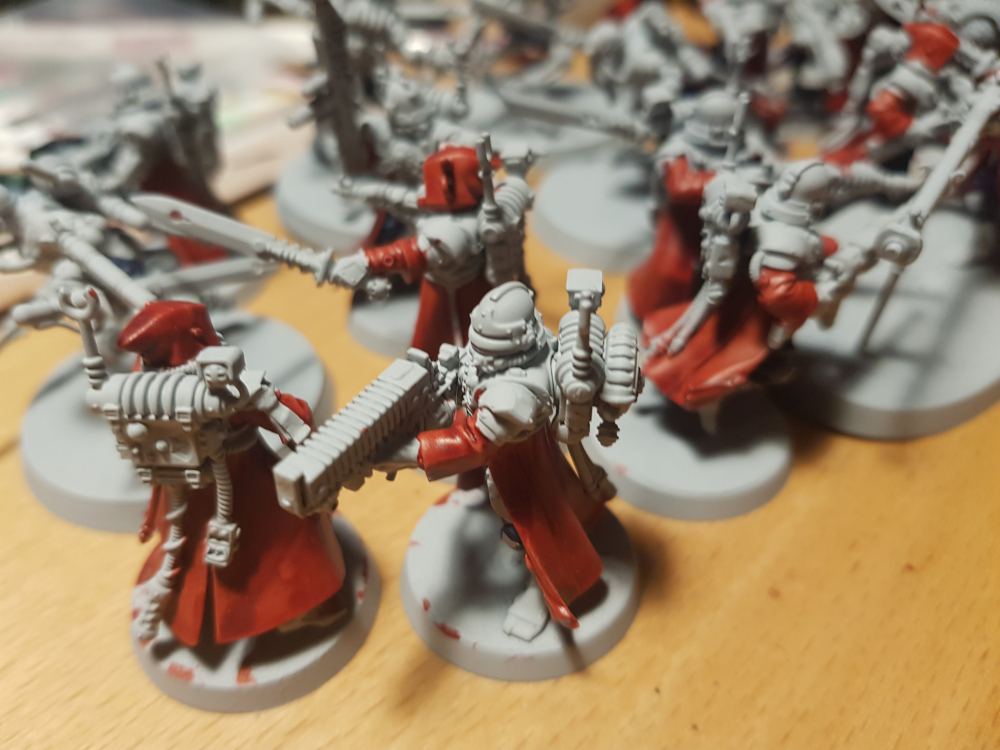Yeah, it didn’t happen, though I did finally start messing with colour schemes in recent weeks. Ultimately, It just fell by the wayside, in the same way as my Adeptus Mechanicus had. I like the Ad Mech, and I like the colour scheme that I settled on, but I just never quite settled to the painting. I did finish up my red and made a little bit of progress on the metallics.