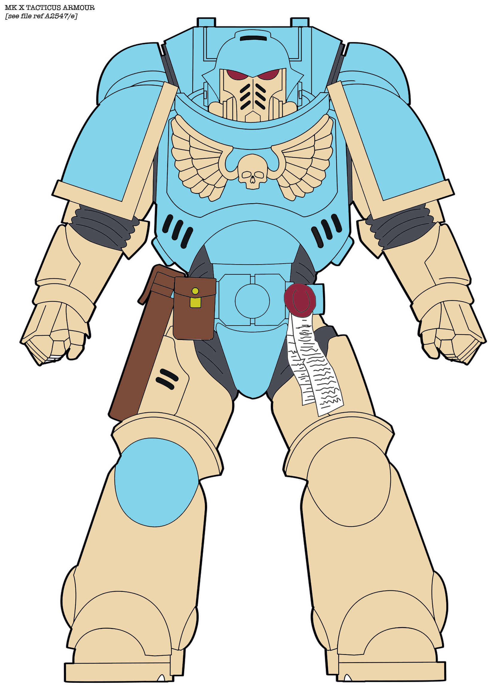 We held another contest later in the year, wherein contestants were asked to design a Space Marine chapter. The idea was to design a “house chapter” for our club, The Northern Knights. Here was my entry: