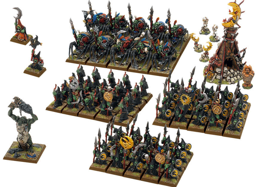 The final section of the army, I suppose, would be the ‘normal’ goblins; a horde of black-robed, fungus-fueled gitz, supported by deranged shamans and crazed Fanatics.