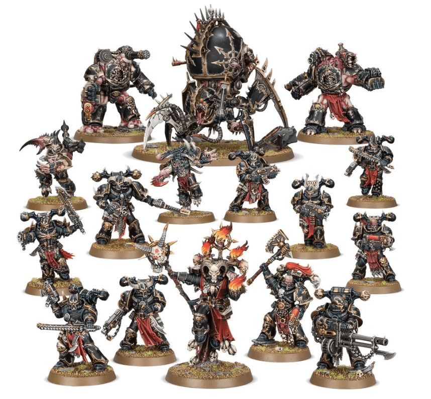 In terms of getting started with such an army, the Start Collecting box is actually pretty perfect for me. I mean, I get that the competitive Chaos Space Marines lists do not actually have all that many marines in them, preferring instead to fill out compulsory troops slots with cheap cultists, but we’re all about the rule of cool here! We want marines, and this box gives us 10 to get started with. It also gives a Venomcrawler Daemon Engine and a couple of Obliterators: