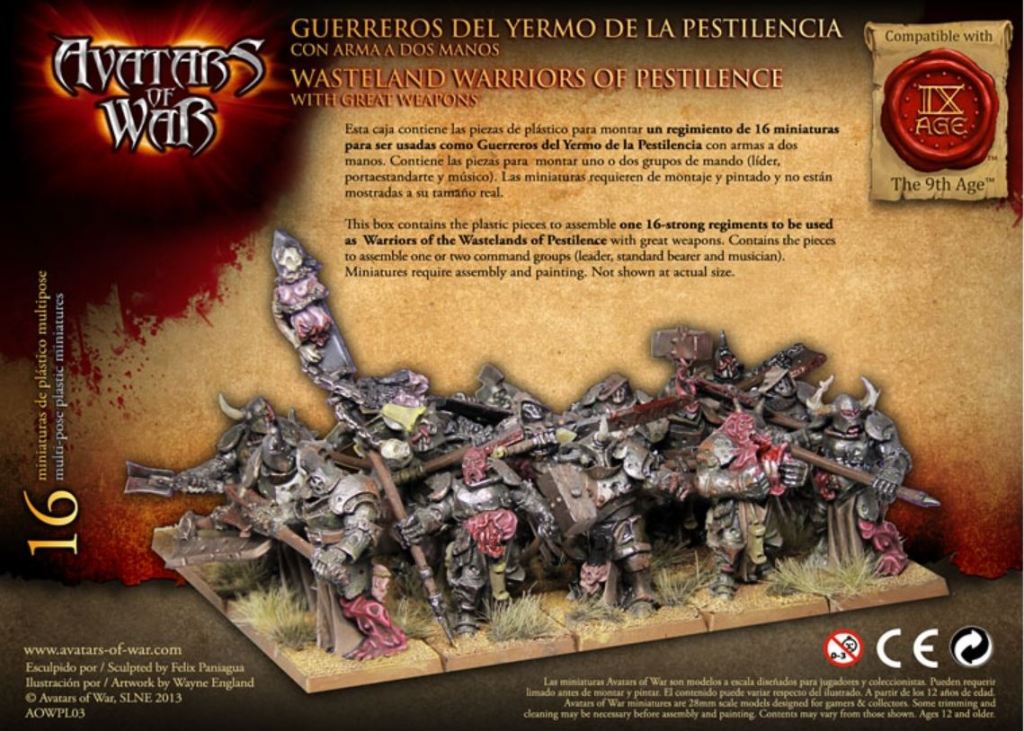 The other troops I’d be looking to are some Chaos Warriors. Now, the existing Chaos Warrior miniatures, whether the dynamic ones from the new Start collecting box or the more static ones from the standard kit, are nice miniatures. The thing is, I’m not going to use them. Part of the reason this army appeals to me that I get to buy new stuff, but I also get to use up lots of Nurgle stuff that I’ve already accumulated. One idea was to use my stock of the older Chaos Warriors, the ones that are much more twisted, bent double, and generally uncomfortable-looking. The thing is, I actually might have something even better. I actually have about 40 (or possibly more) of the Avatars of War Pestilence (or Corruption) warriors: