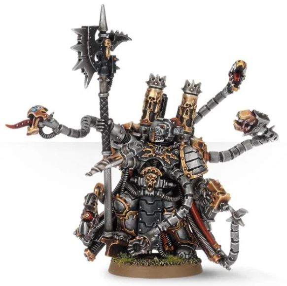 The Warsmith miniature that’s currently available is wonderful. He’s so full of character, looking heavy and dense, but also having these snaking mechadendrites writhing around him. The Lord Discordant is one of the best miniatures in the CSM line, and also seems pretty solid ruleswise. My first draft of an Iron Warriors list featured two of them. He also has that cool aesthetic of the Dark Mechanicus, which I’ll come back to in a bit.