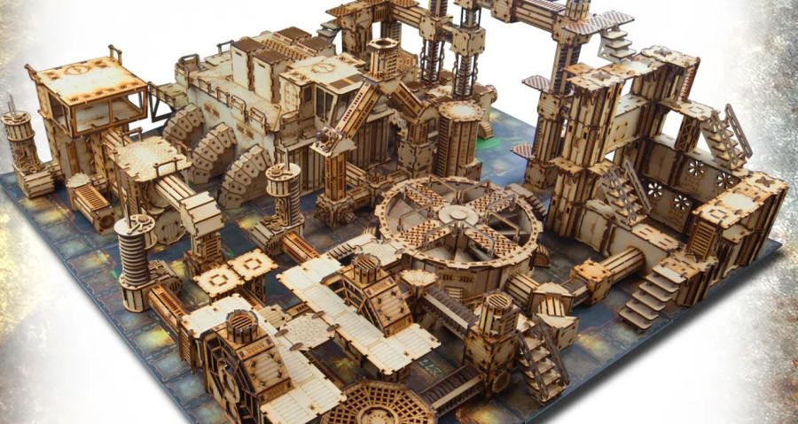 Let’s start with some of the beautiful MDF terrain pieces that several companies produce. it’s created by using a laser to cut into small sheets of MDF. it is a matter of burning away that which you don’t want to create patterns and shapes.