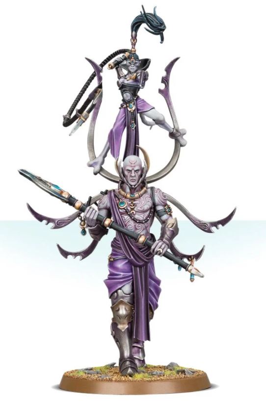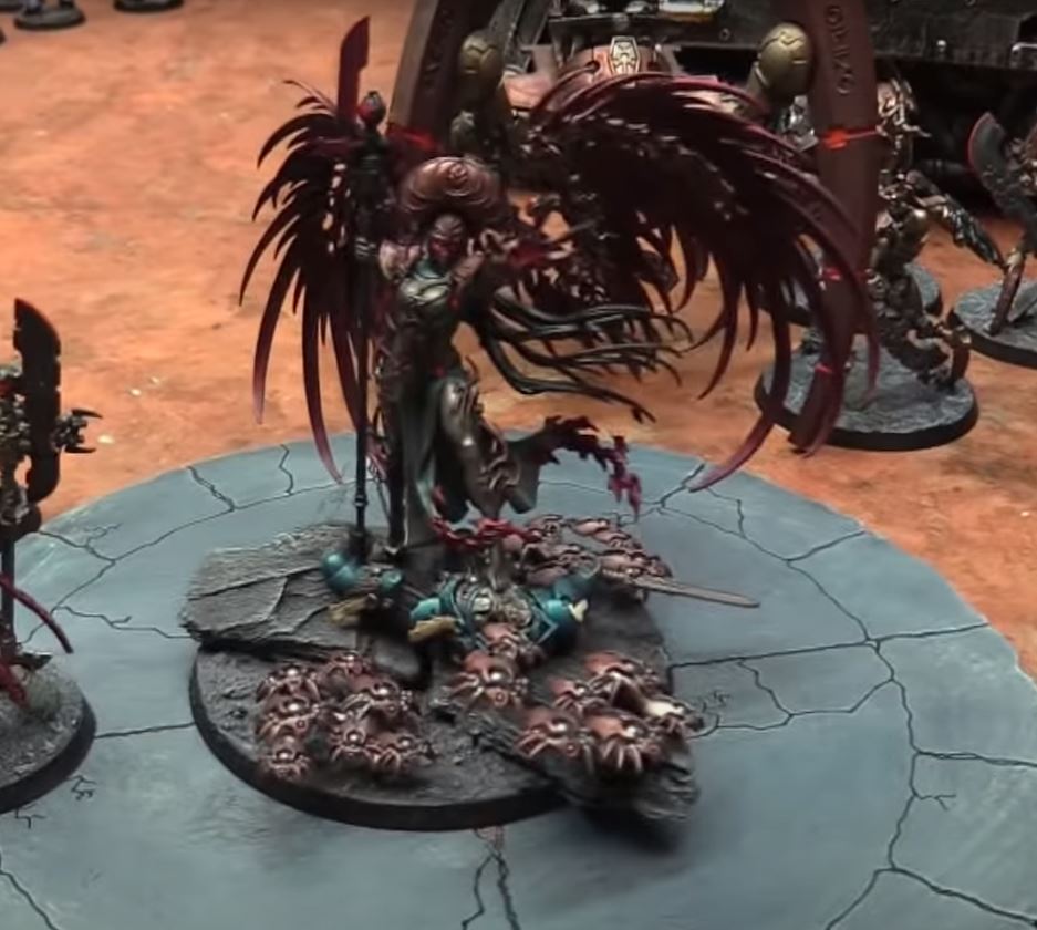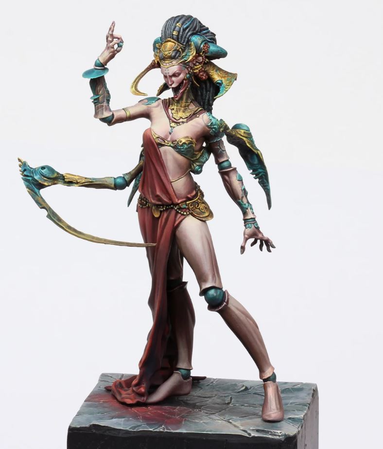 One of Ash’s guests uses this rebased Alarielle as a Shard of the Deceiver and I actually really like it. You can click here to watch the video and I do suggest that you subscribe to Guerilla Miniature Games as it’s really good. It’s my favourite channel for battle reports by far. On the miniatue, I would say that it doesn’t need much in the way of conversion, but I’d do the same as the example above and swap out the weapon. The Scarabs on the base is actually a good way to base any of these proxies.