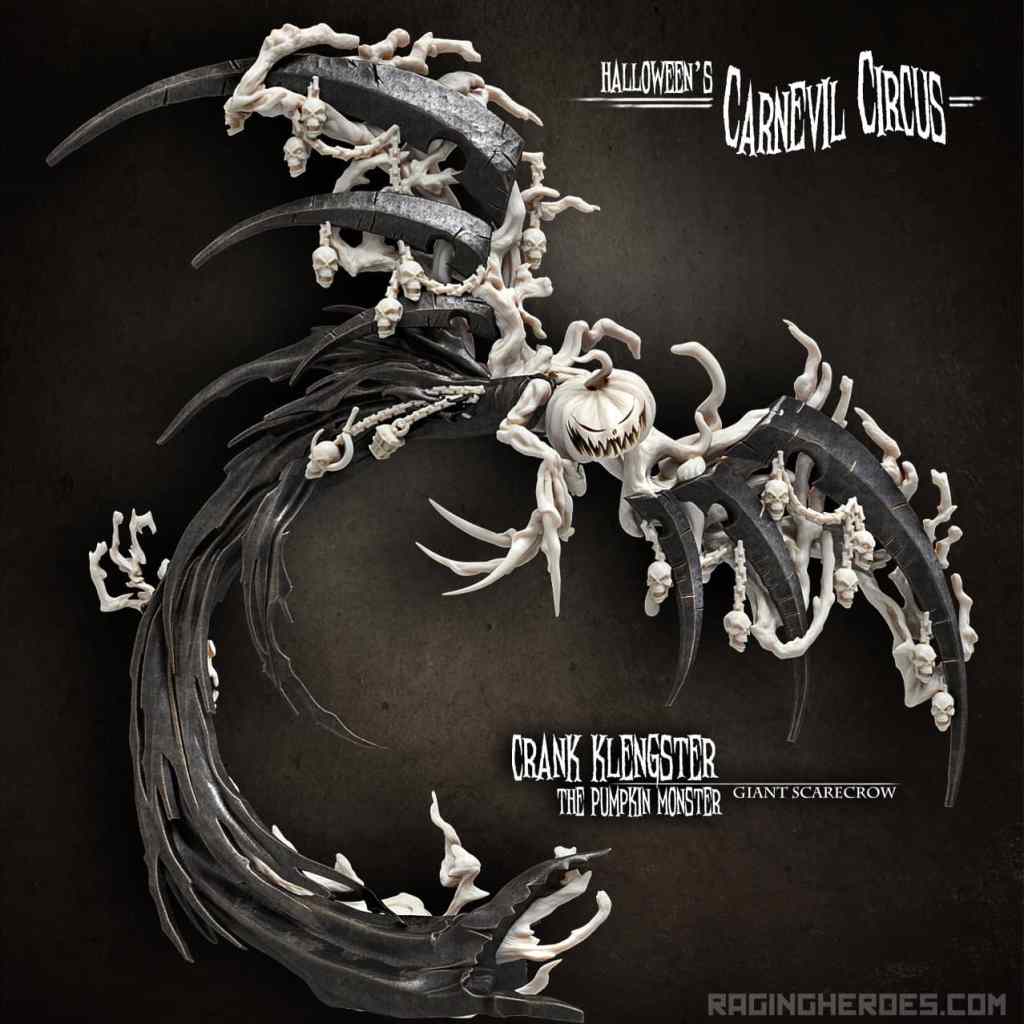 Ok, so this will need a bit of work. Obviously the pumpkin will need to go. I mean, it’s really cool, but it’s more campy Nightmare-Before-Christmas-style horror than C’Tan. I’d also consider getting rid of all the skulls. Skulls are key motif in Warhammer 40,000, but they’re not used as heavily by the Necrons (except, obiously, their skull-like mechanical faceplates) nor the existing C’Tan miniatures. So, ditch the pumpkins, remove the skulls and find something else to use for a head and you’ve got a really cool, dramatic Transcendent Shard or Nightbringer. I just love how dynamic this model is, with the long, sweeping cloak and the big, beautiful, curving claws. Breathtaking. I’ve got some Raging Heroes miniatures myself, and I can attest to the quality of the miniatures. Definitely worth considering if you fancy a project.