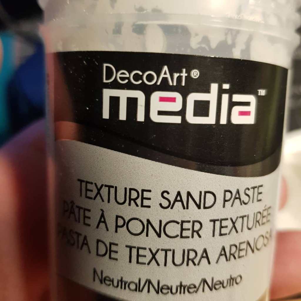 As an aside, I had intended to use my trusty DecoArt Texture Sand Paste to rought up the sword, but when I opened up my pot, I was met with a surprise:
