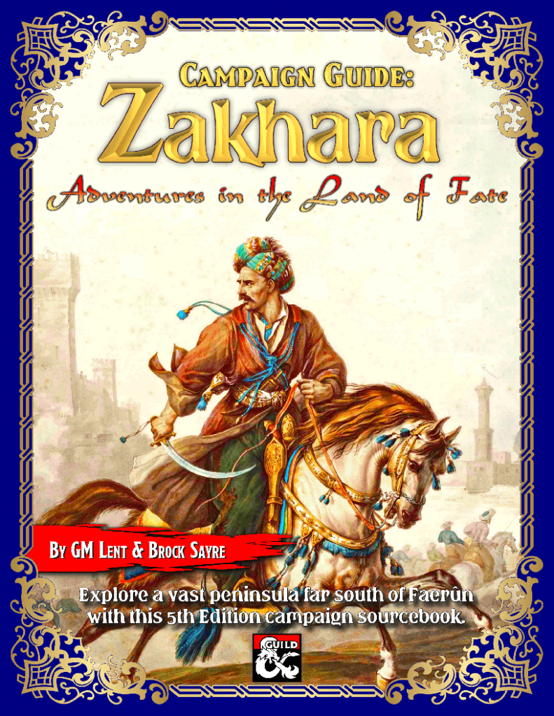Zakhara campaign guide now available on the DM’s Guild – I often see it remarked that in this day and age the “Forgotten Realms” seems to basically mean the western portion of the continent of Faerûn, encompassing the Sword Coast and the Lands of Intrigue, possibly with some Underdark thrown in. The setting, as it stand with current, 5E material, has shrunk somewhat. Enter the DM’s Guild. Here, smaller groups and individuals are exploring and updating older material, and one such book has caught my eye this week: