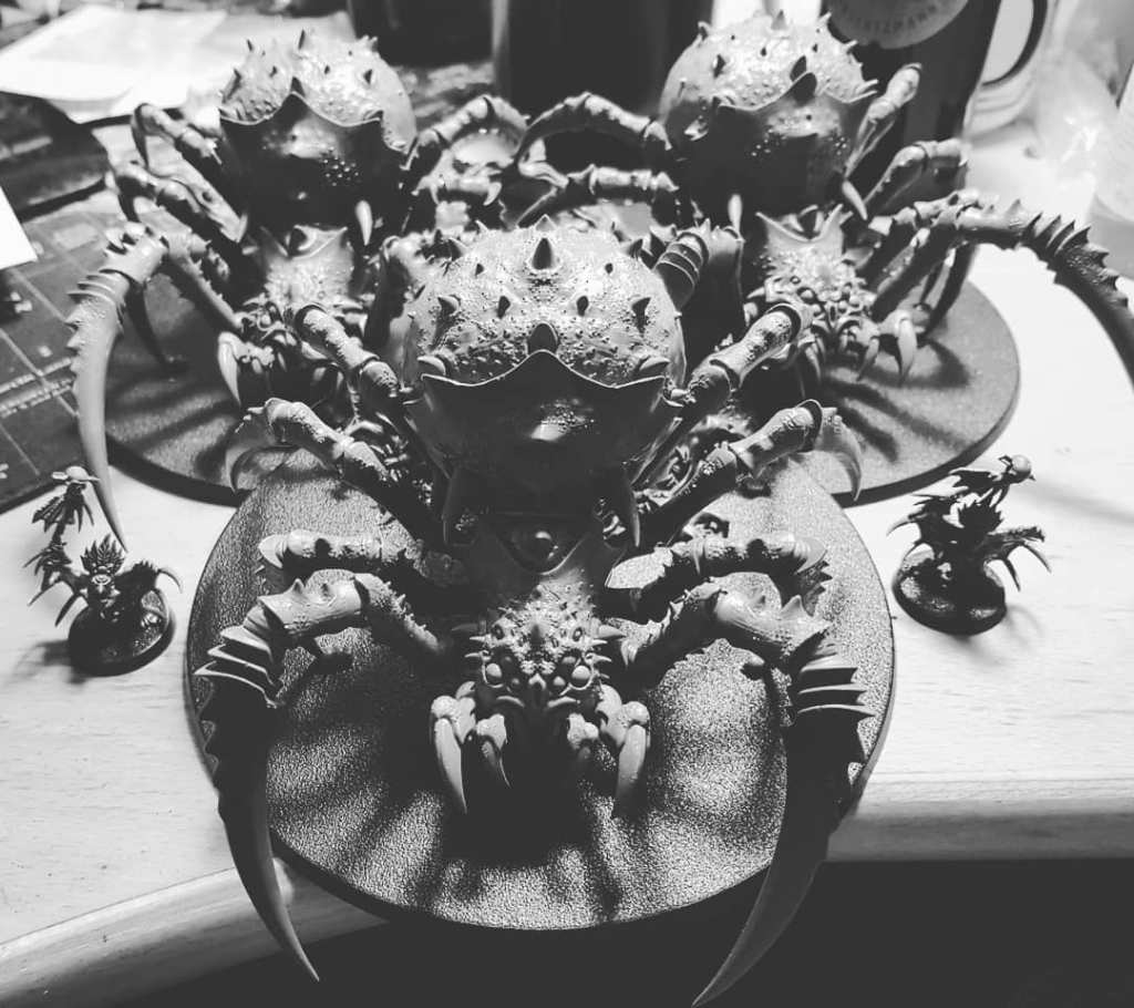 I’ve now built them all and have textured the bases. I’ve not taken many photos, but I did snap this one midway through building the Arachnaroks: