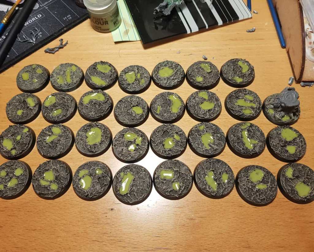 I’ve also spent a bit of time getting the bases ready for the miniatures that I’ve built. I’ve gone for a lovely, swampy, slimy base: