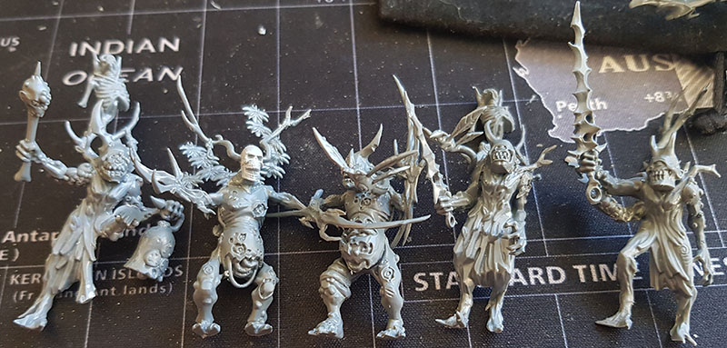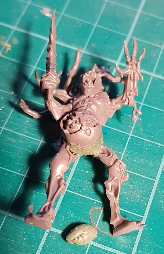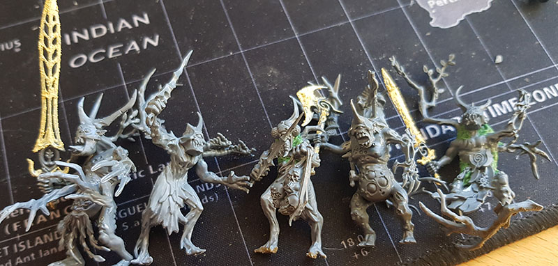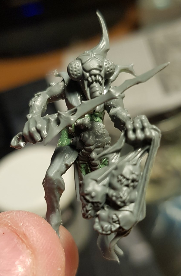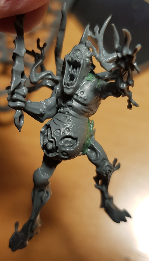 As I shared in both of my posts, I’ve been working on building some lovely Nurgle/Sylvaneth kitbashes to represent a beautiful Garden of Nurgle army. I previously shared the first couple of units of Plaguebearers which were largely built, but needed some gaps filled with greenstuff: