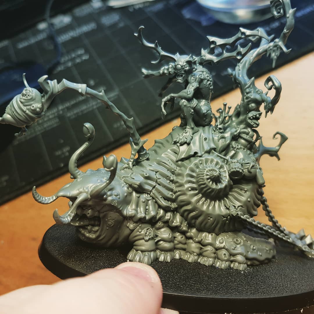 Awesome looking minis. Love the giant snail monster. Are you using the Vallejo texture on your bases? Looks a bit different than most of the GW products.