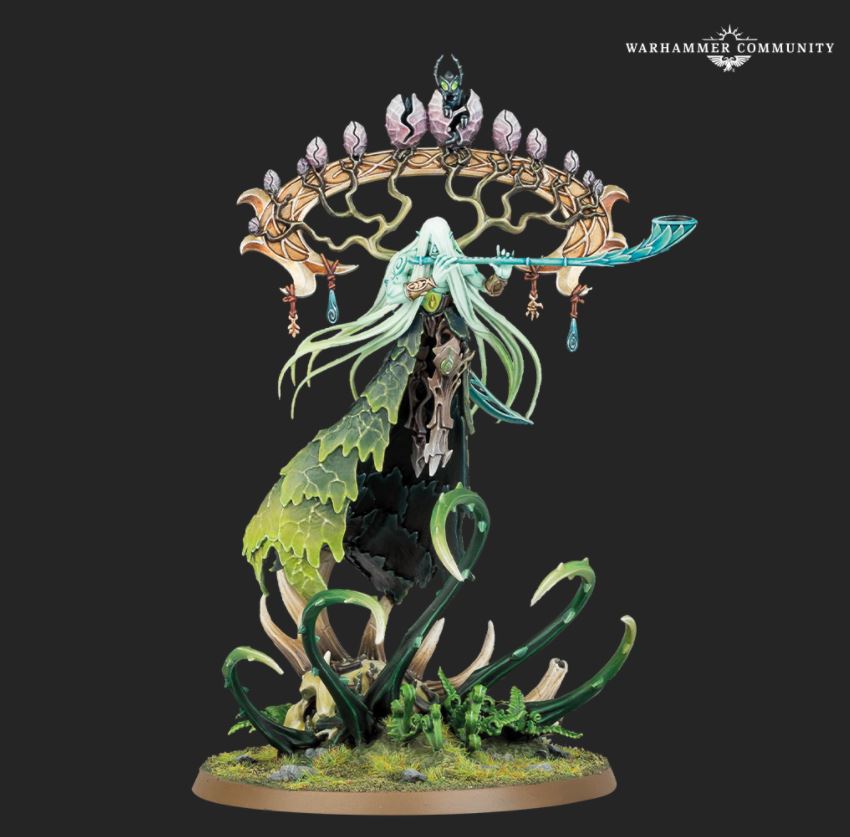 Finally, there’s the Sylvaneth Warsong Revenant. I love the pose of this model. From the cool base, up the leafy cape, along the lines of the hair and the flute. I’d be curious as to how I could use this model in my Garden of Nurgle.