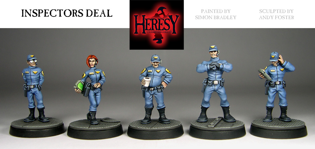The game is really flexible in what you can build, and gives you a whole toolbox that you can use to build characters around pretty much any sci-fi miniatures that you have to hand. I’ve seen people’s crews/gangs/whatever and there are lots that are incredibly unique and creative due to conversions, or using more obscure miniatures from smaller companies. In my case, my first crew will be based on the Inspectors from Heresy miniatures. I picked them up a good while ago and really like the sculpts: