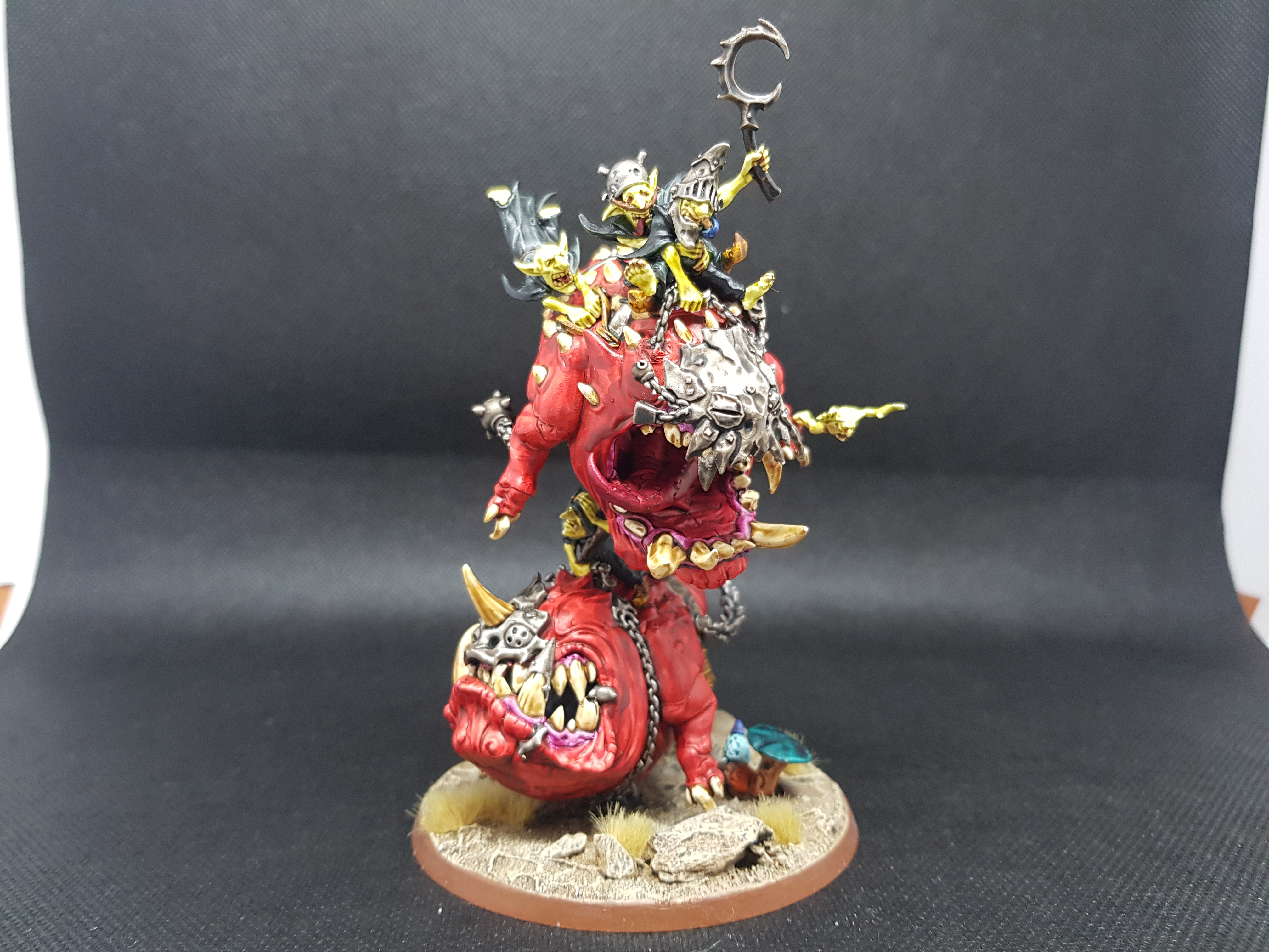 The featured image at the top of the page is my recently-finished Loonboss on Mangler Squigs. Grabbed some pics of him for a club painting contest. Will upload the various entries of that at some point next week.