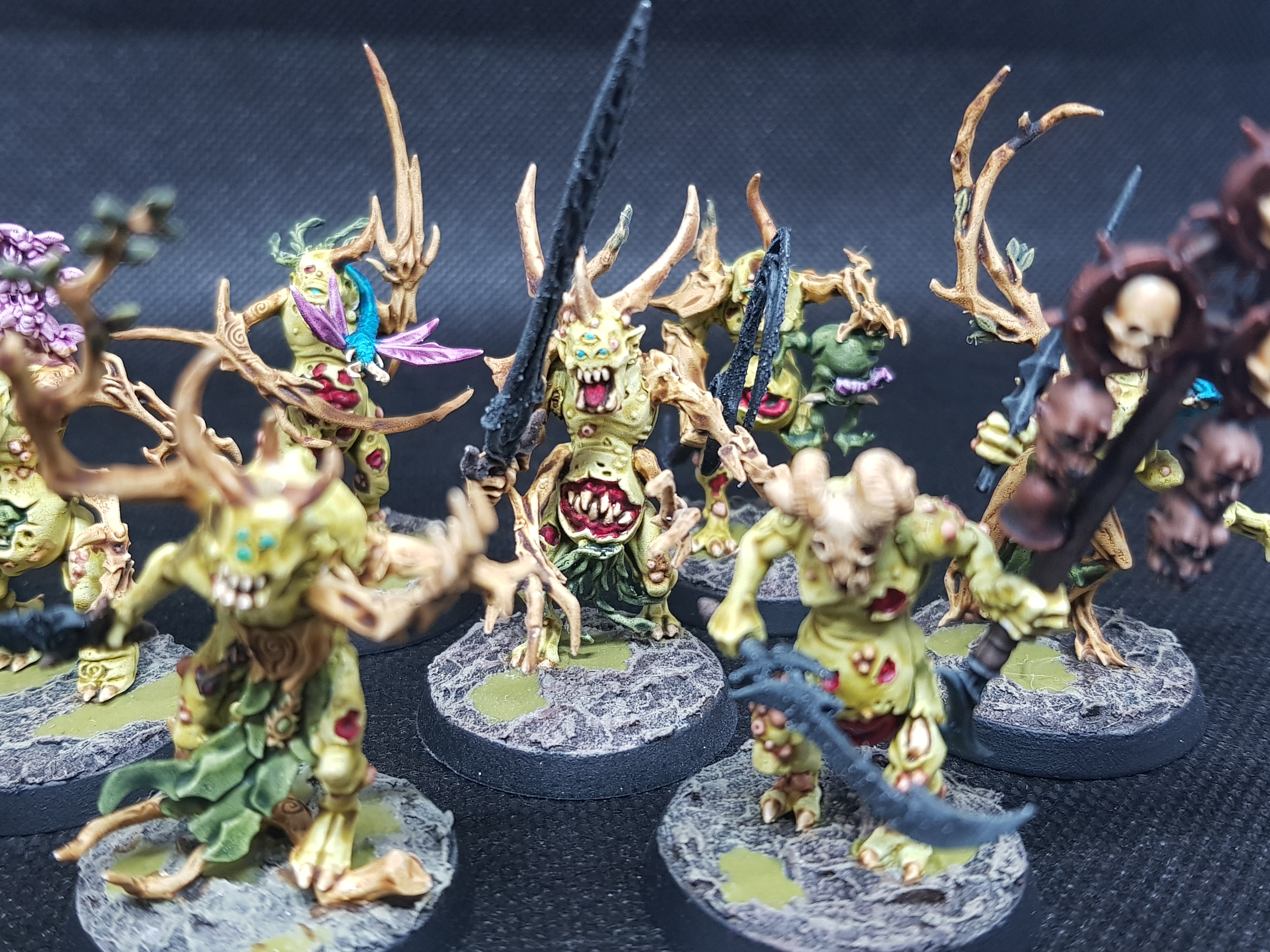 I’m really enjoying putting together my Nurgle armies. First of all, I love that I managed to paint my first 2,000 points of Maggotkin of Nurgle in just a few weeks. Secondly, I love that I got to really dive in with the kitbashing. Every miniature in that army, with the exception of Horticulous Slimux, was made up of more than one citadel kit. Mostly, they were from the Plaguebearer and Dryad kits, but I also used bits from Kurnoth Hunters, Tree Revenants, Plague Drones, Poxbringer and possibly others. Oh, there’s a couple of bits from the Squig Herd sprue, too!