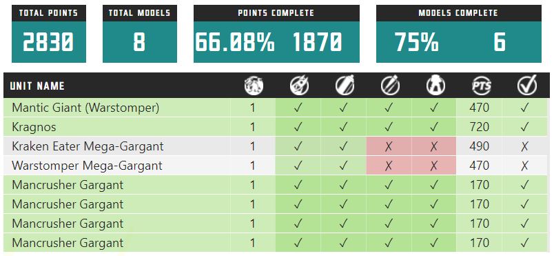 I’ve also been tracking the army on my Pile of Potential, a fantastic tool for managing hobby workload and projects: