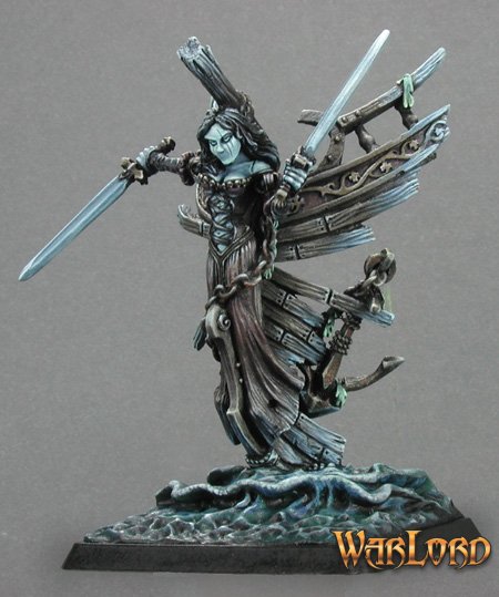 Reaper actually makes two similar miniatures that confusingly share the Dark Maiden name. The second of these is much smaller and would be perfect as a smaller, infantry-sized leader like a Tidecaster or Soulscryer:
