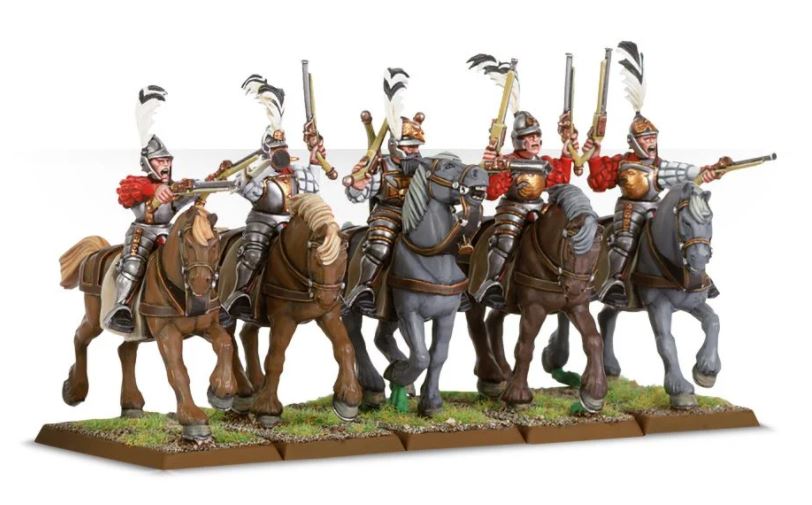 The new zombies are a lot less modular and flexible than the old (admittedly outdated) kit. This is a pity, though they are definitely still usable. It’ll just require a bit of surgery to get them cut up. The pistoliers will be a great source of pistols, both in standard form, and the repeater ones that come with the Outriders, another unit that can be built from the same box. A box each of handgunners and pistoliers should provide enough for at least two units of Reavers, possibly 3. I’d like skeletal parts as well, but the new GW skeletons, although gorgeous, are very much soldiers. They have a strong identity and just aren’t flexible enough for use here.