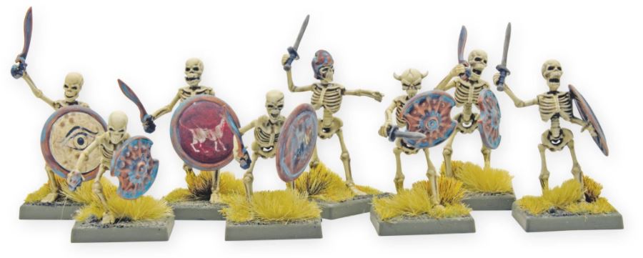 The character minis are pretty stunning, aren’t they? When it comes to the others ones, they all look great. There are only 10 Zombies, which is a pity when you need a minimum of 20 for a unit, but we can always try to rustle up some more. The skeletons look amazing, and would form a good core of the army. They are also pretty in line with the new Deathrattle Skeletons that were put out a wee while ago: