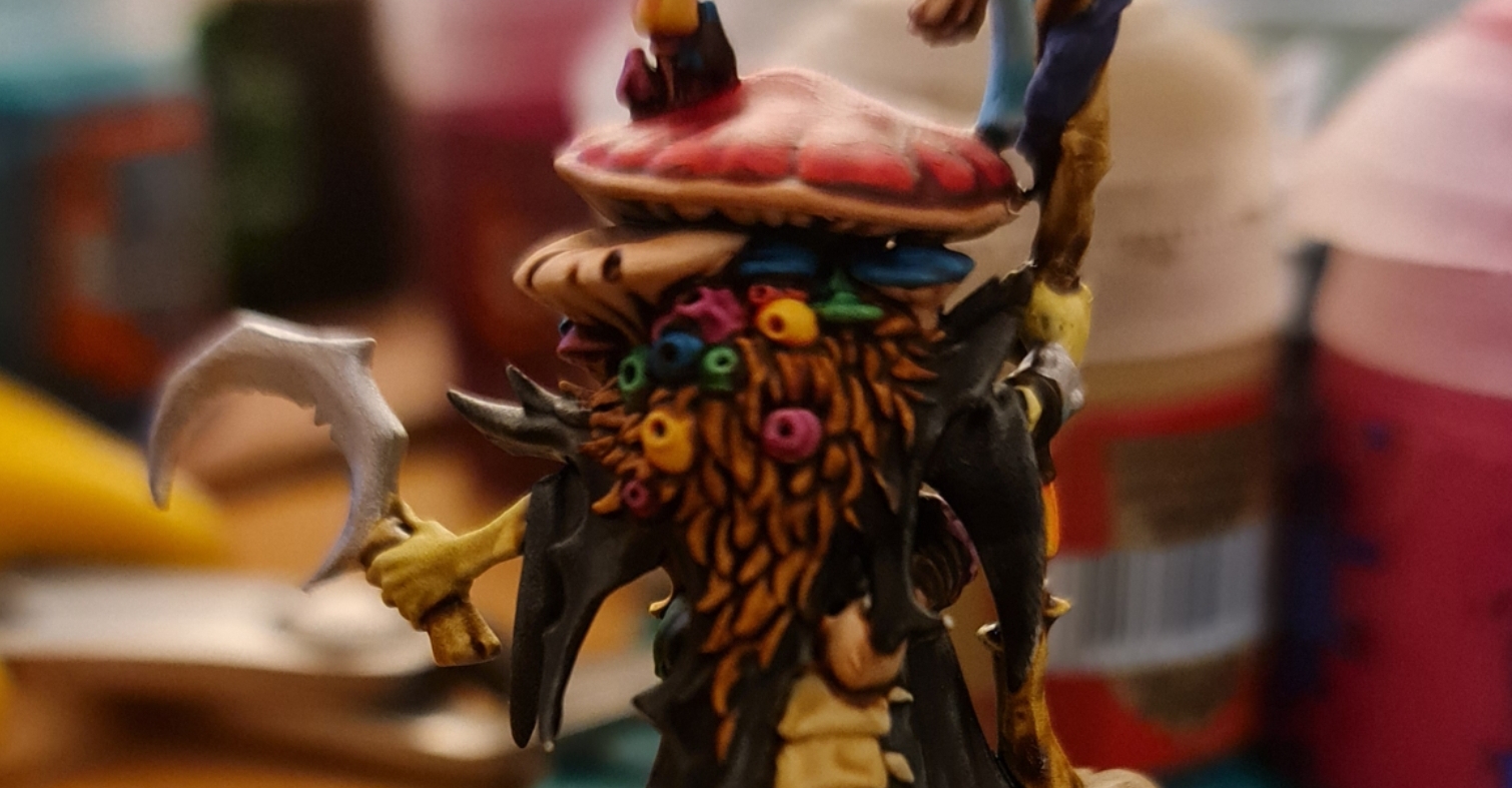 More progress on the Gitz! Today I’ve got a couple of Shamans to share. The first of these minis is actually my favourite model in the army. Its the Fungoid Cave Shaman: