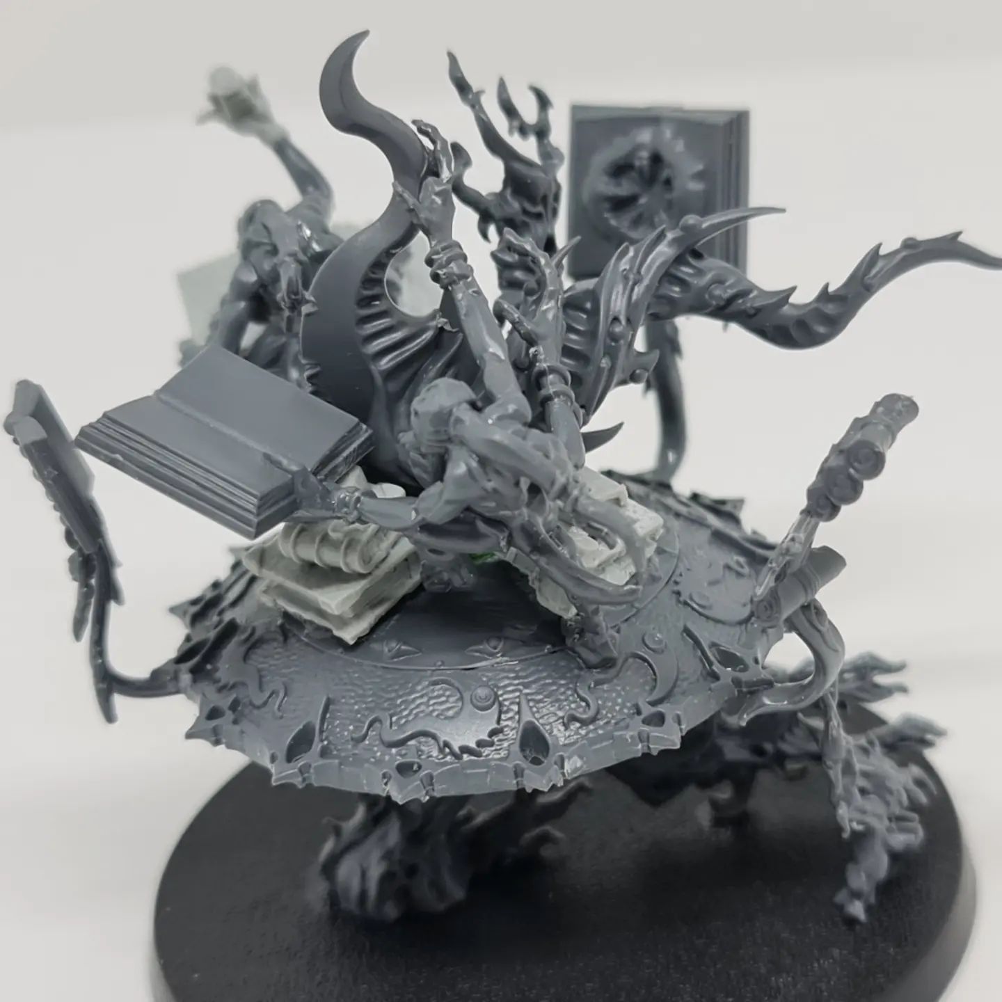 My other conversion from this week is a bit different. A while ago, I bought the resin miniature for The Blue Scribes. I built it. I dropped it. It shattered. Damn. I’ve now put together my own version. I was able to salvage some parts of the model and I took other bits from a Burning Chariot kit: