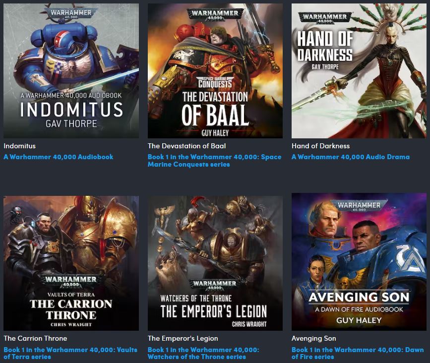 Specifically, these are all Warhammer 40,000 audiobooks. Even more specifically, these are all novels that are set around the Indomitus Crusade, so these are all pretty recent books, coming from the 8th and 9th editions of Warhammer 40,000. That they are all so temporally close together in the setting is interesting, as you will get a really broad view of the current state of the Galaxy in the Warhammer 40,000 setting.