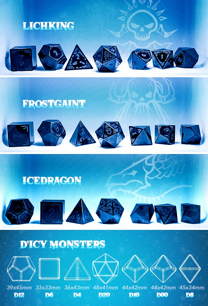 The D’icy Monsters promise to be obsidian whisky stones (food safe, obviously) in the shape of dice. They are offering a full set of polyhedral dice. Of course, there are usable as large, ornamental dice on the tabletop, but can also be put in the freezer to then be placed in a drink to maintain coldness.