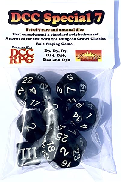 Yes, in addition to the standard polyhedral dice set used in Dungeons & Dragons, Dungeon Crawl Classics employs a number of less common types, including: