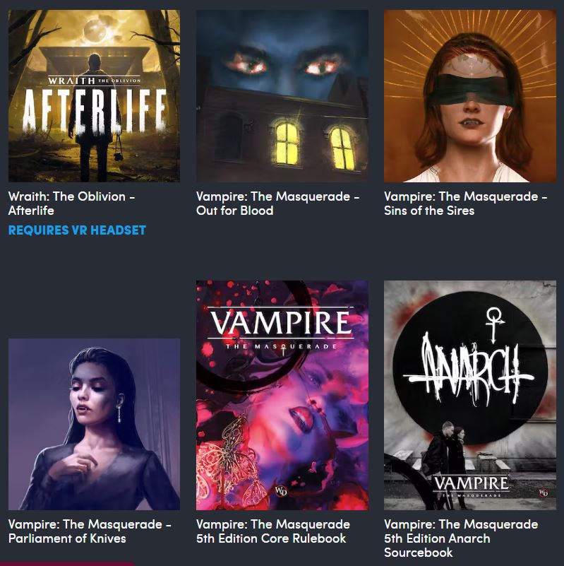 It’s quite a different bundle. Usually, they seem to be just one thing. Like, all video games, or all books, or all software. This is a proper mix of stuff around the theme of the World of Darkness. Needless to say, it’s caught my interest!